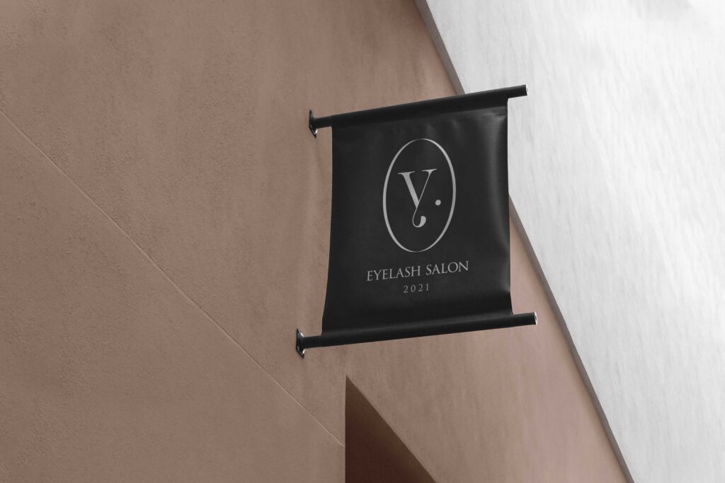 シンボルの「y」は、左へ一度流れ、右へと戻るような線構成にすることで、“また訪れたくなる場所”でありたいというサロンの想いを表現しています。